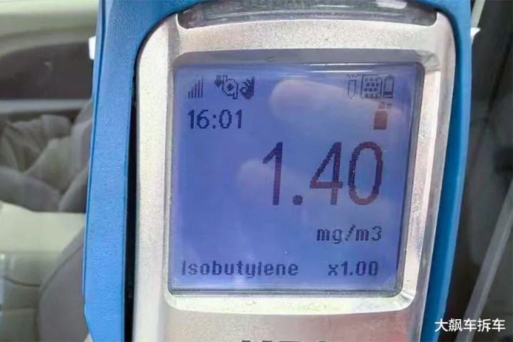 经过在23±1℃恒温环境中16小时的封闭,这辆车的车内空气TVOC释放量测量数值为1.40毫克每立方米。