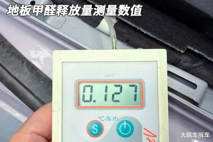 测试方法:将测试车辆在自然环境中,打开车门车窗进行完全通风;随后,将一根硅胶软管固定在司机头枕附近,模拟人呼吸位置;关闭车门车窗,将车辆停在恒温23±1℃的环境中密封静置16小时;使用采样仪从软管泵吸出10升车内空气,与酚试剂反应;将显色剂滴入酚试剂中,静置15分钟;使用醛正甲醛检测仪将显色后的样本进行检测,得出结果。
