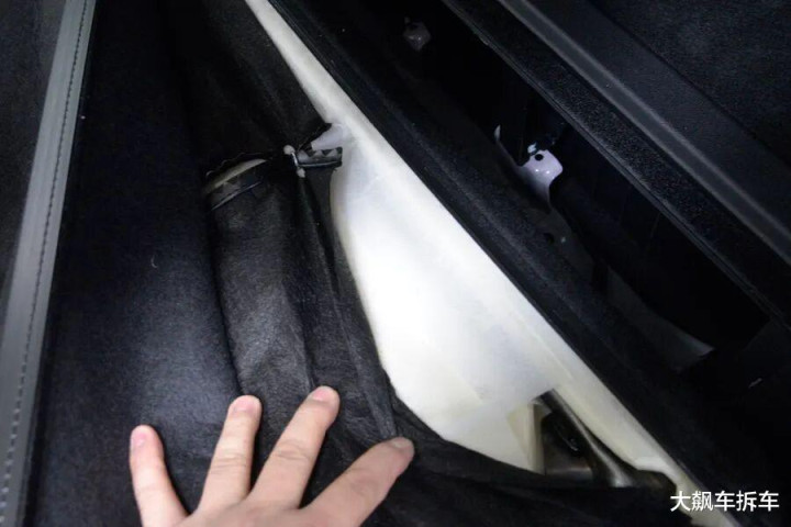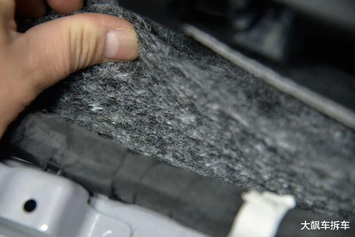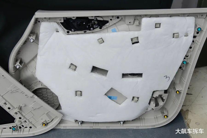 前门内饰板贴有大面积白色原生隔音棉,而后门却空空如也。
