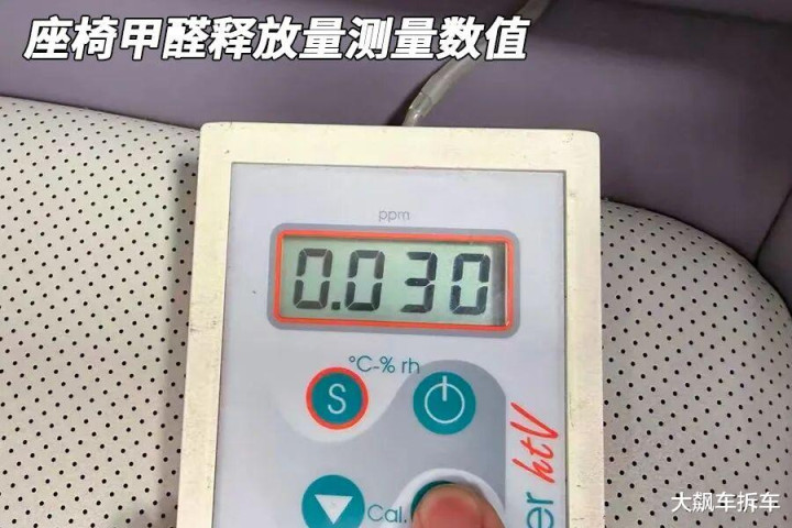 座椅的甲醛释放量测量数值为0.030毫克每立方米,顶棚中的甲醛释放量测量数值为0.061毫克每立方米。